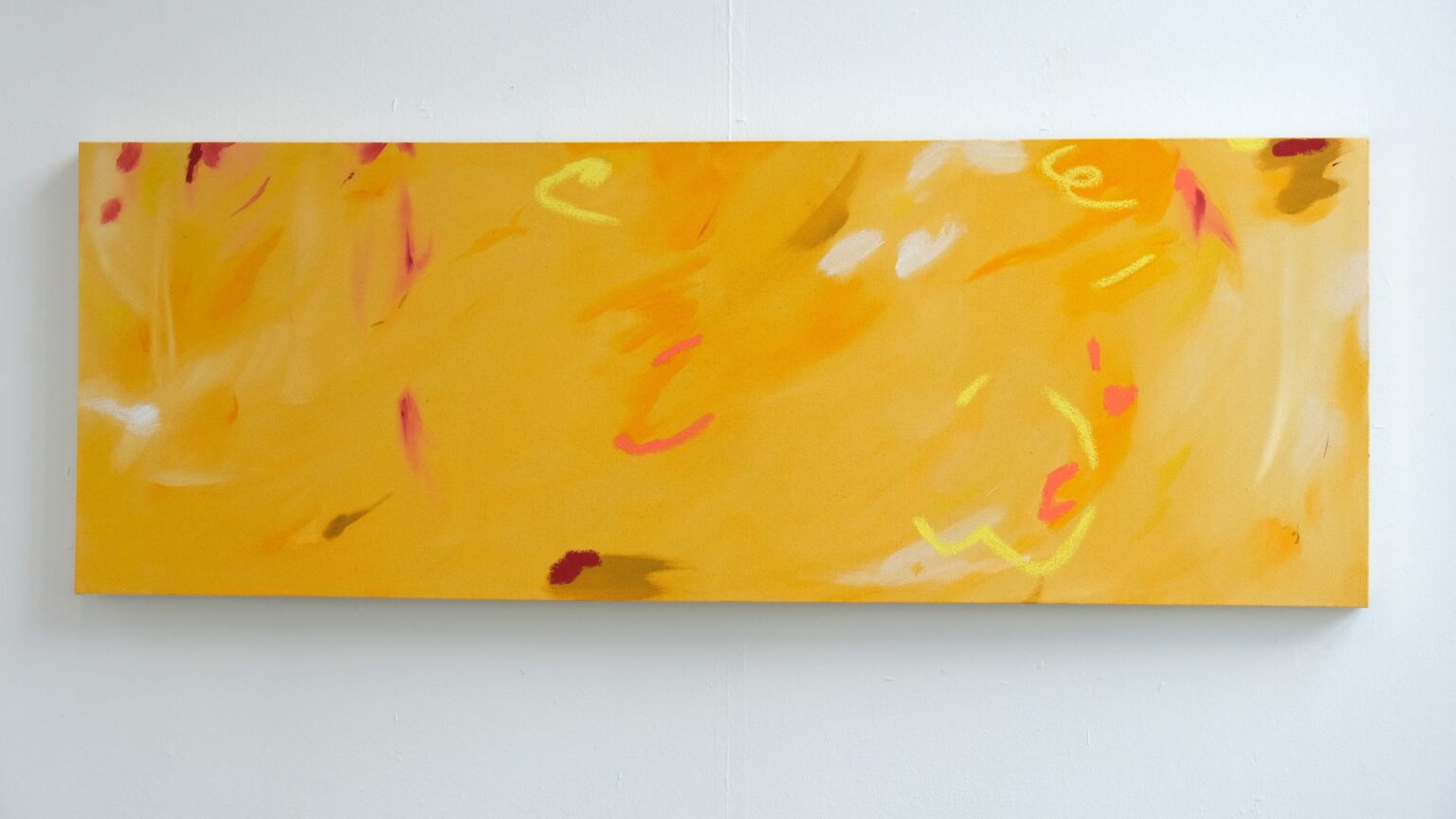 Jenna Maclean (b.2001) is a painter from Glasgow. Her practice is rooted in abstract painting, where she explores themes of nature, nostalgia and memory enhanced by sound. The focus is primarily on procedural memory- unconscious knowledge revealed through gesture and intuitive mark-making. Jenna’s process has an emphasis on immediacy and embraces repetition. Her paintings allow for the viewer to enter a space of reminiscence. A place that is not entirely present but fragmented and distant. This can be through colour choice, application methods and mark-making.