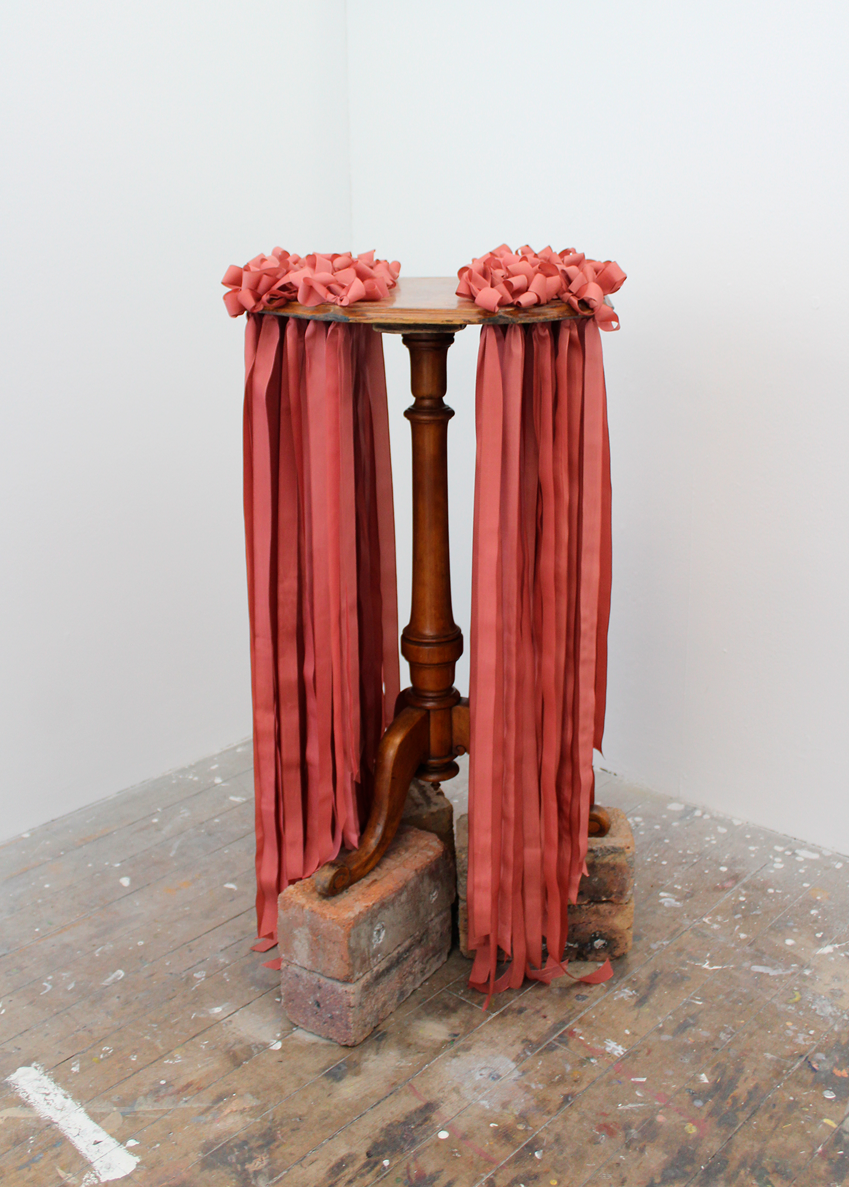Madeleine Kaye is an artist and writer from the East Coast of Scotland. Her practice is concerned with intimacy, femininity, contradiction, and the olfactory. Assassination of the Bow: Notes Towards a Novel Written with Ribbon is a body of sculptural work made alongside a manuscript for a novel, which is a fictional narrative examining the loose decorative knot known as the bow.