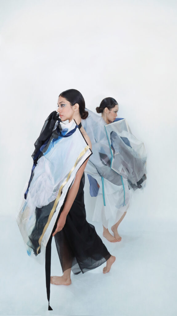 One can broadly be described as ‘Textile, or surface, led’ with a design approach considered to be from the ‘Textile-outwards’. The other can broadly be described as ‘Silhouette, or shape, led’ with a design approach considered to be from the ‘Silhouette-inwards’.