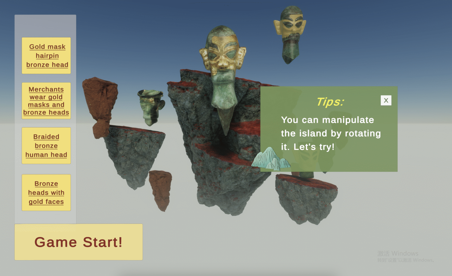 Develop a Sanxingdui-themed online digital exploration platform using Unity. Through 3D interactive games, 2D mini-games, and artefact data collection, establish diverse exploration modes to comprehensively discover Sanxingdui culture and relics. This highly engaging platform delivers educational content and immersive experiences.