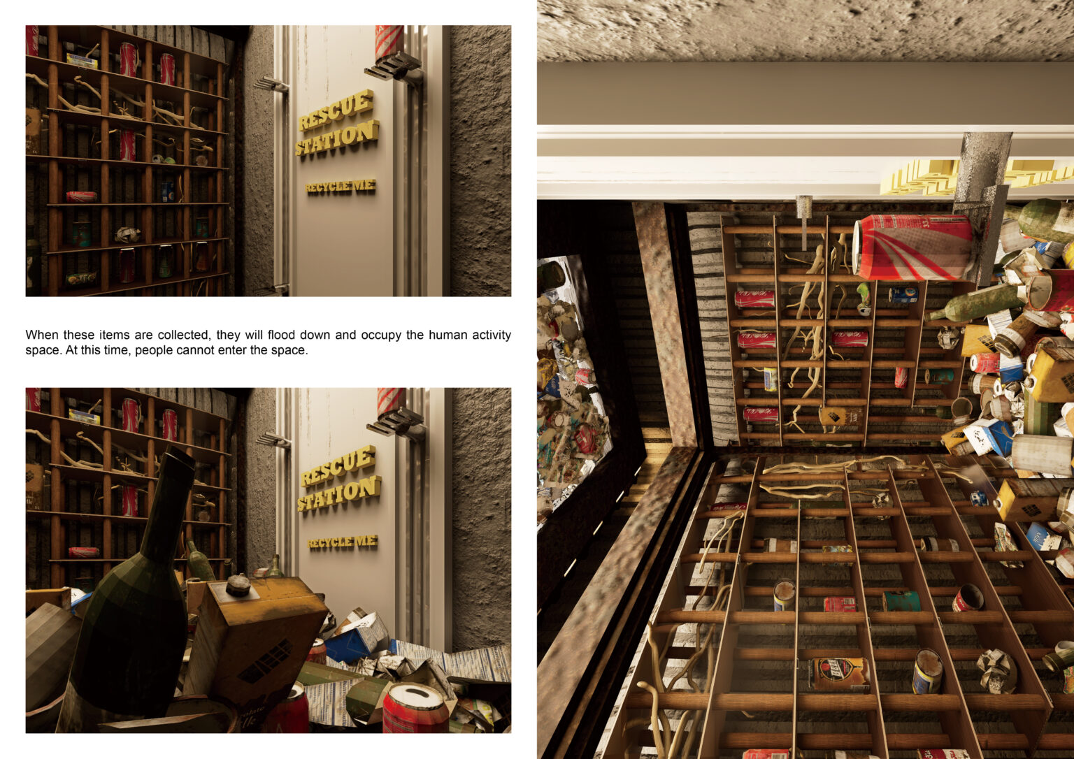 Providing space for these non-human things to coexist, giving space to abandoned spaces, creating an urban space where multiple objects coexist, and demonstrating the connection and value of marginal and abandoned objects.